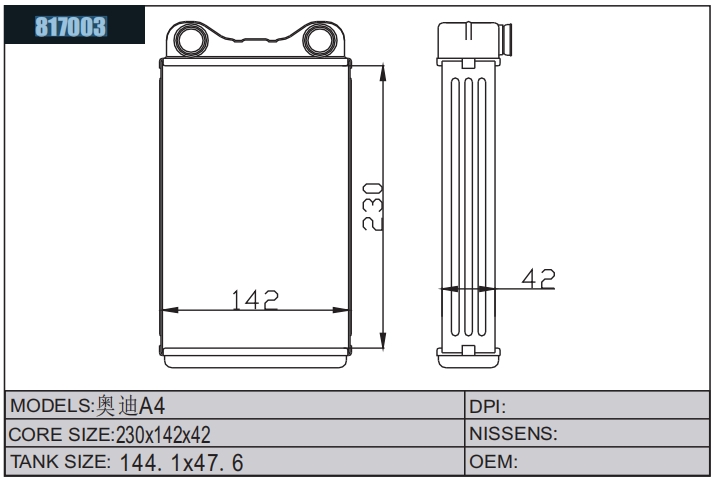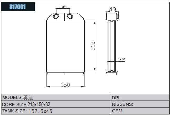 817001/817002/817003/817004/817005 Air conditioning Auto Heater Core/Heat Exchange for Audi