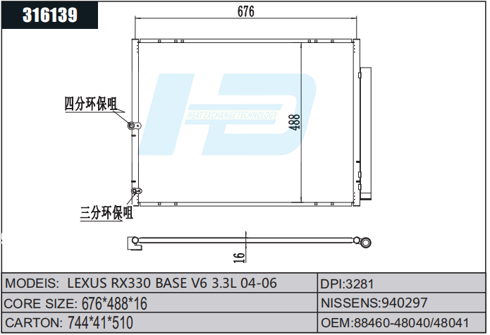 AC Condenser For Car 316139 88460-48040/48041 LEXUS RX330 BASE V6 3.3L 04-06 Car Heat Change