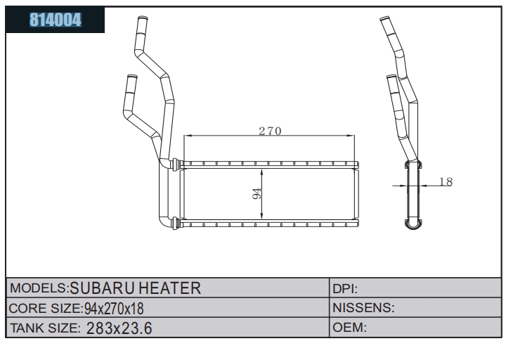 814001/814004 Auto Heater Core Fit diesel fuel heater for SUBARU